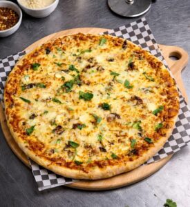 A popular fusion dish combining traditional Italian pizza crust with bold Indian flavors.